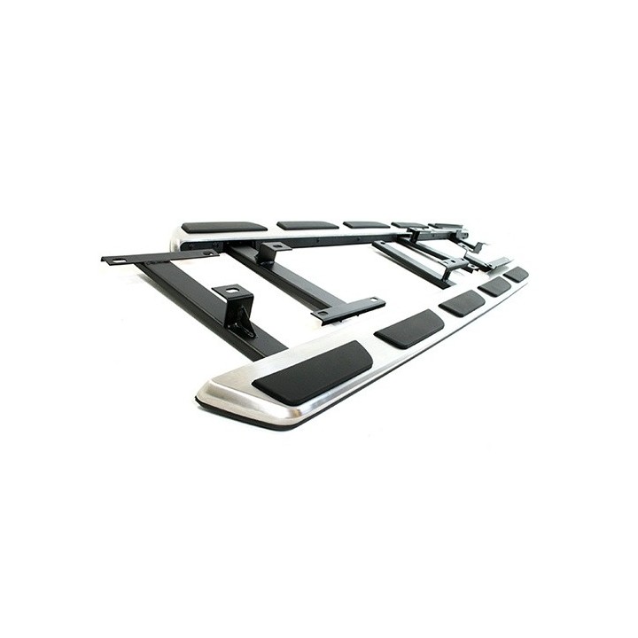 Running boards are wide aluminum plates with a profiled top. This ensures maximum slip resistance and helps you get into your vehicle safely.