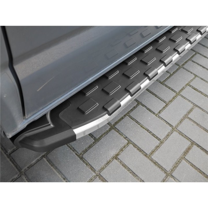 Running boards are wide aluminum plates with a profiled top. This ensures maximum slip resistance and helps you get into your vehicle safely.