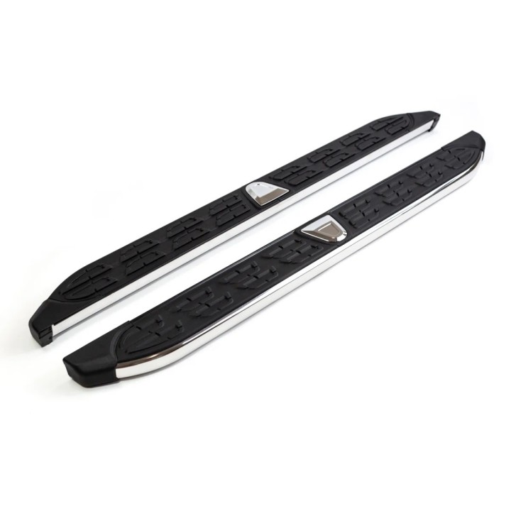 Running boards are wide aluminum plates with a profiled top. This ensures maximum slip resistance and helps you get into your vehicle safely.