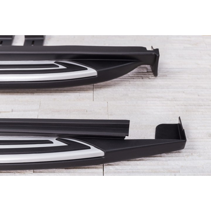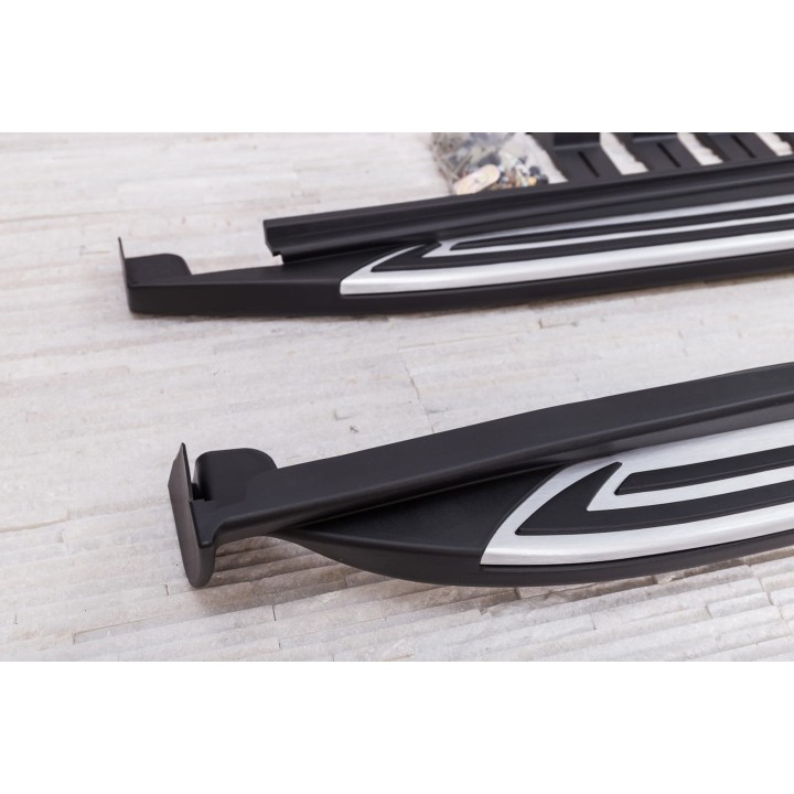 The various advantages: Running boards facilitate entry and exit and thus increase comfort. They also provide protection against scratches or door dents. The resale value of the vehicle increases Exclusive and individual design Sporty and dynamic appearance Top quality: high quality aluminum Perfectly adapted aerodynamics Load capacity per side 160 kg Easy loading of roof bars No drilling or welding necessary