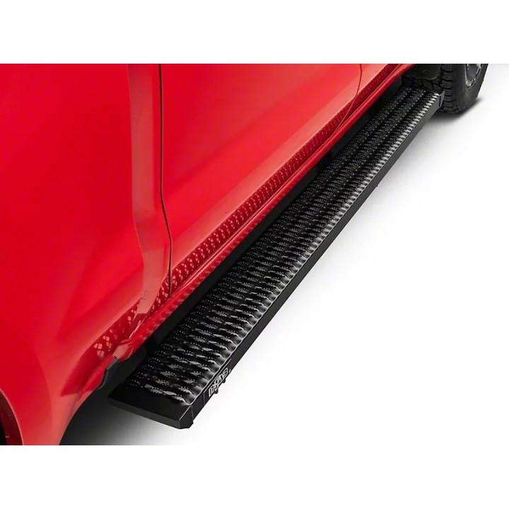 The Growler running board gives your vehicle a clean yet aggressive look. The Sure Grip tread design allows for ultimate traction in all conditions. All-aluminum construction with modular steel brackets provides long-lasting durability and strength for all your vehicle's needs. Bolt-on brackets make installation quick and easy. This is a practical option for work and fleet truck solutions.