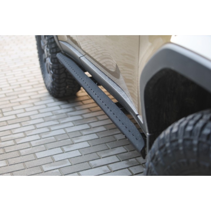 The off-road ROCK SLIDERS are made of a 3 mm wall profile and their supports are made of 6 mm thick steel.