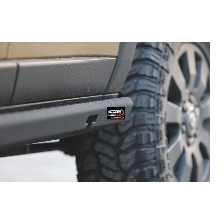 The Toyota Land Cruiser J250 side steps are bolted to the vehicle's chassis.