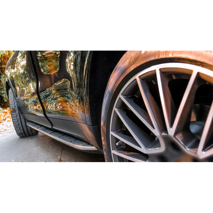 Elegant and functional, these running boards facilitate entry and exit from the vehicle while offering a touch of robustness. Non-slip rubber studs dot them for a safer step, even in bad weather.