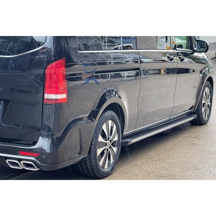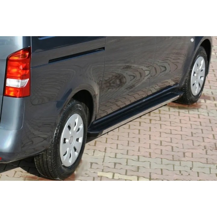 Running boards are wide aluminum plates with a profiled top. This ensures maximum slip resistance and helps you get into your vehicle safely.