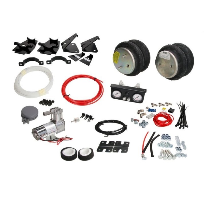 They are recommended for leisure vehicles carrying heavy loads, such as motorcycles, large camping equipment, or other heavy accessories. This air suspension kit improves ride comfort by reducing friction and correcting the vehicle's stance, thus maintaining a stable level regardless of load distribution.