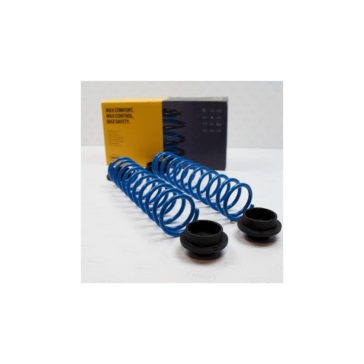 The springs are progressive and stiffen with load. All MAD products are TÜV certified and do not affect other vehicle components. This set is suitable for drivers driving with variable loads, from 0 to the maximum permitted load. At the maximum permitted load, the vehicle maintains its original loading height.