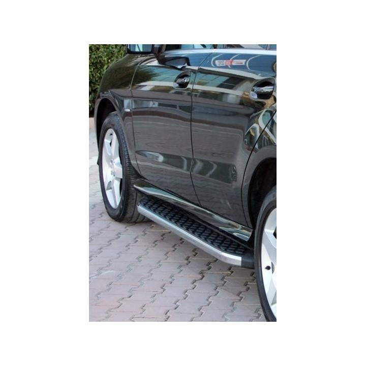 Running boards are wide aluminum plates with a profiled top. This ensures maximum slip resistance and helps you get into your vehicle safely.