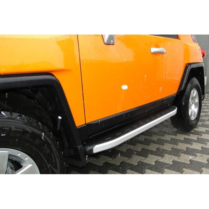 Running boards are wide aluminum plates with a profiled top. This ensures maximum slip resistance and helps you get into your vehicle safely.