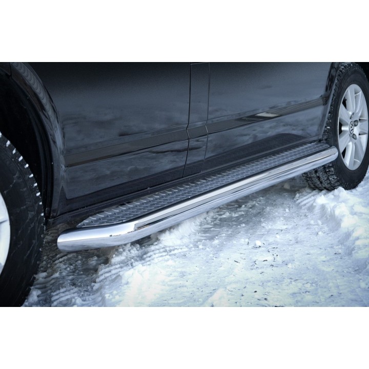 The stainless steel side running boards consist of bars 70 mm in diameter and 2 mm thick. Installation is non-invasive, using factory mounting points, so the car retains its original construction.