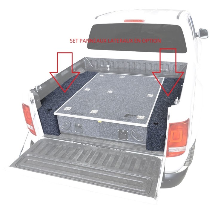 In addition, for this drawer tray system: we offer side panels to again create a straight loading floor, as well as