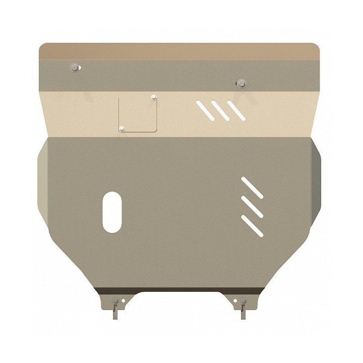 This protection plate is made of quality 4 mm thick aluminum and is fixed to the original holes of the vehicle. The service openings in the protection plate allow vehicle maintenance without disassembly.