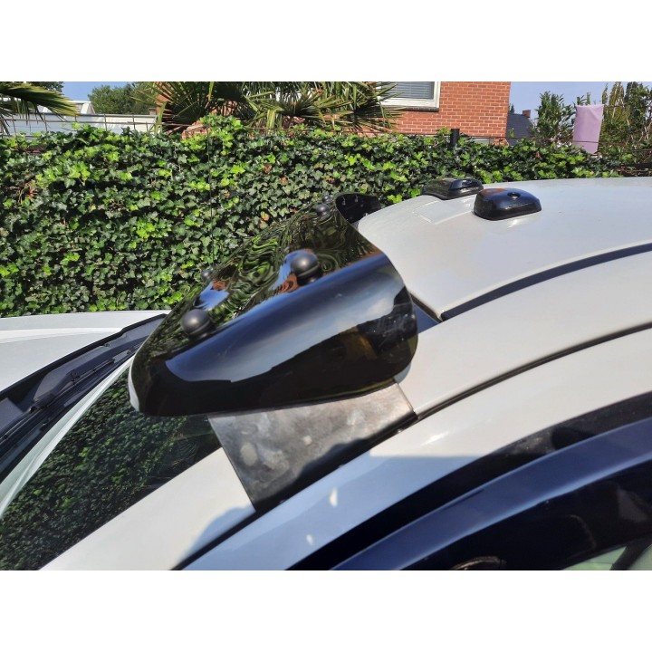 The sun visor is made of PLEXIGLAS and mounted on a metal frame for mounting on the windshield. The sun visor prevents glare and reduces fatigue. In addition, it enhances the robust appearance of the car.