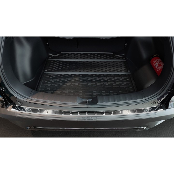 This boot sill protector with edges effectively protects against dents and scratches during loading and unloading. Thanks to its shape, like the ribbed pattern on top, it is designed to perfectly match the design of the TOYOTA COROLLA CROSS. And if you ever want to replace the protector after intensive use, that's also possible. It will be much cheaper than repainting your bumper.