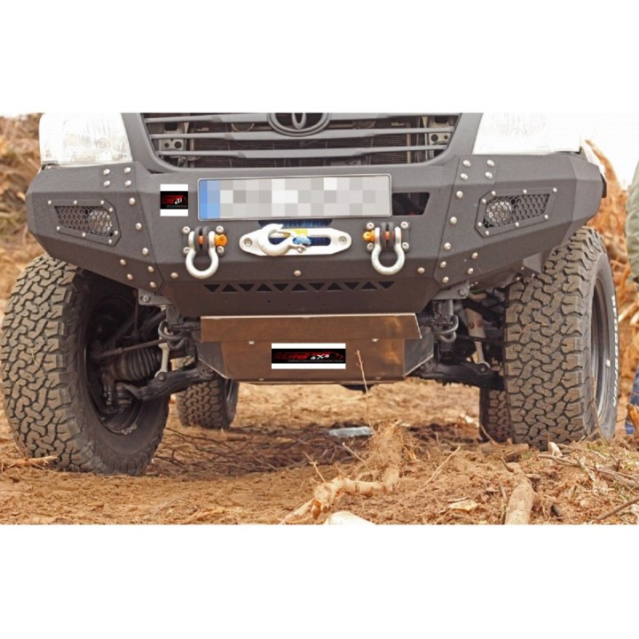 - The bumper is equipped with two integrated supports for daytime running lights or fog lights, reinforced fixings for shackle mounts and an integrated winch support plate (possible installation of a 4 to 5000 kg winch).