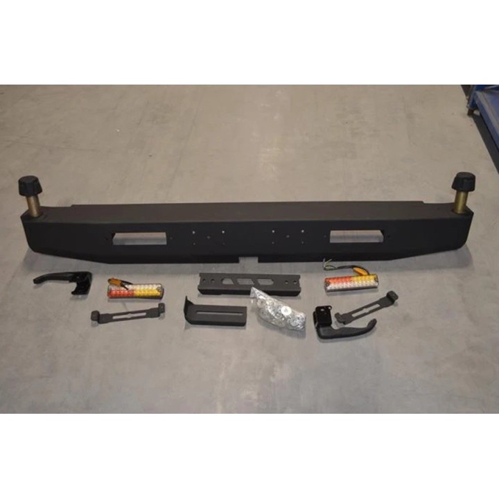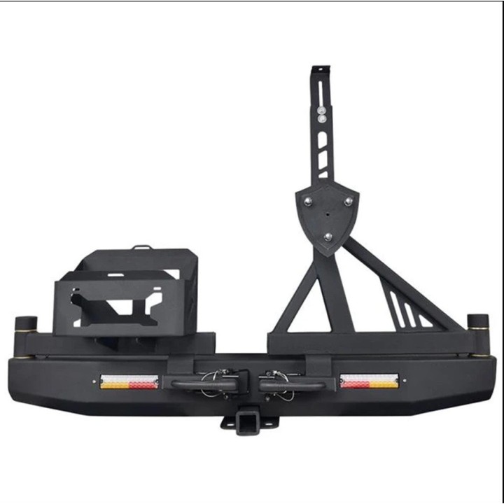 Rear bumper with spare wheel and jerrycan holder