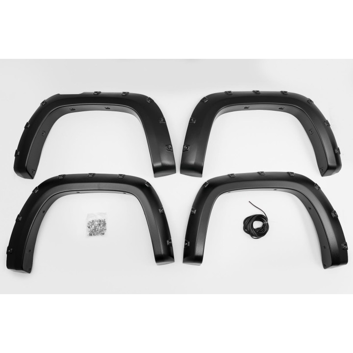 The recessed stainless steel bolts (decorative screws) and the massive look emphasize the car's off-road character. They are mounted without drilling additional holes in the fender. The extensions are made of thick, deformation-resistant Dura-Flex 2000 material and painted black. They can be assembled right out of the box.