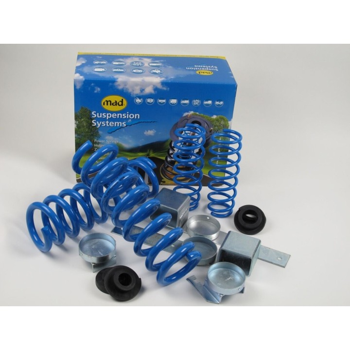 This lift kit raises the car by 30 mm at the front and 30 mm at the rear, which increases ground clearance and gives the car a more pleasant look. The springs are progressive and become stiffer with higher loads. All MAD products are TUV approved and tested products that do not affect other parts of the car. By increasing the car's ground clearance, you can fit larger tires and rims and give the car better off-road performance.