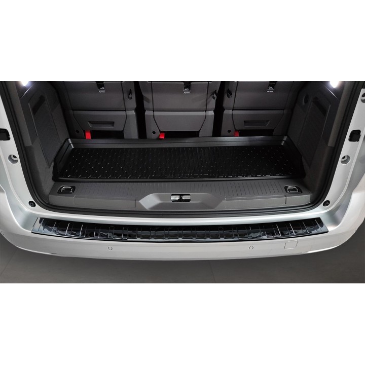 This trunk sill protection with a rim effectively protects against dents and scratches during loading and unloading. Thanks to its shape, like the ribbed pattern on top, it is made to perfectly match the design of the VOLKSWAGEN T7. And if you ever want to replace the protector after intensive use, that's also possible. It will be much cheaper than repainting your bumper.