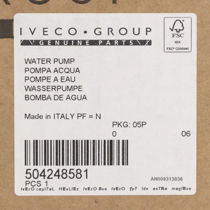 Original Water Pump Fiat Ducato 3.0 16V Type 250 REF 504248581