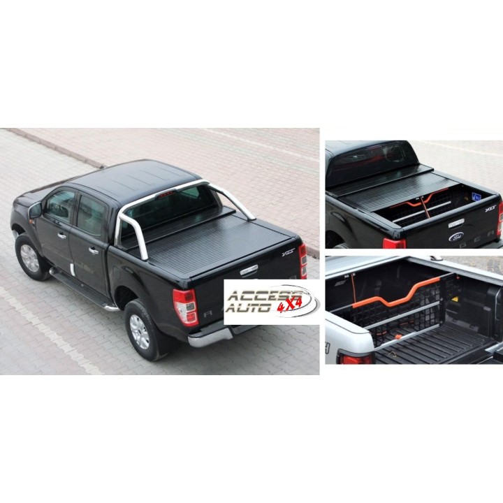 Cubierta de caja corredera de ALUMINIO (tapa enrollable) + Separación de caja + Kit de bloqueo de portón trasero con mando a distancia: