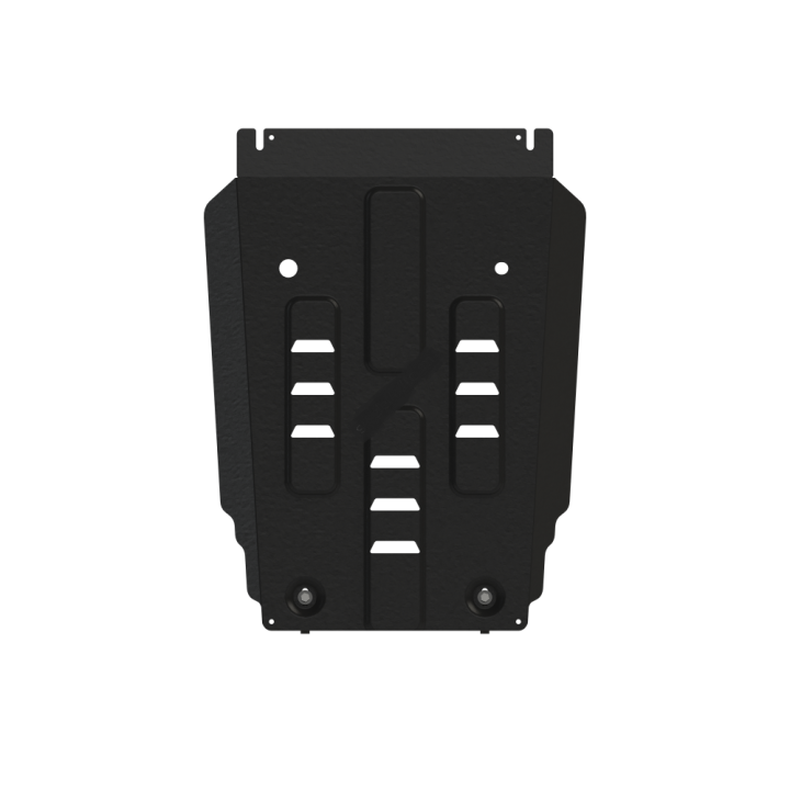 Esta placa protectora es de acero de calidad de 3 mm de espesor y se fija a los orificios originales del vehículo. Las aberturas de servicio en la placa protectora permiten el mantenimiento del vehículo sin desmontaje.