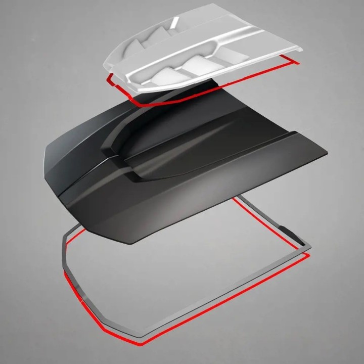 Esta entrada de aire de capó Design está fabricada con nuestra exclusiva tecnología de sobremoldeo que encapsula varias capas de plástico ABS de alto impacto con poliuretano elastomérico, que se adapta a la superficie del capó para un ajuste perfecto que parece recién salido de fábrica.