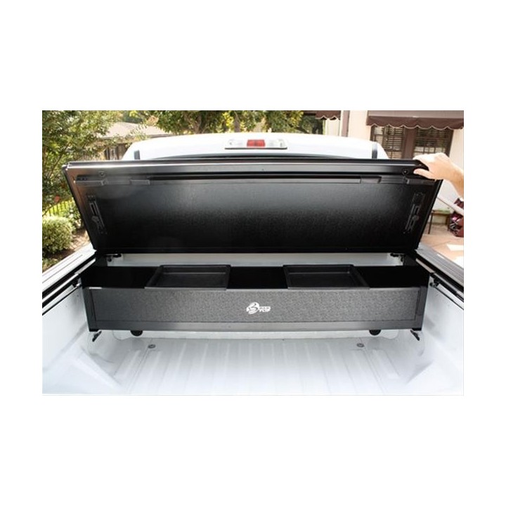 Esta caja de almacenamiento es una caja de herramientas plegable de Bak Industries para usar con las cubiertas de caja: Revolver X2, X4s, Bakflip G2, Bakflip MX4 y Bakflip CS.