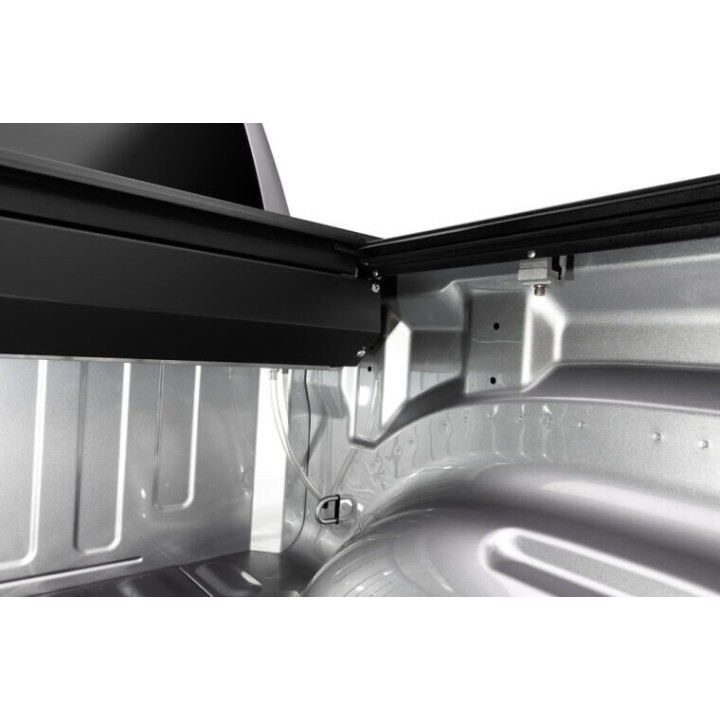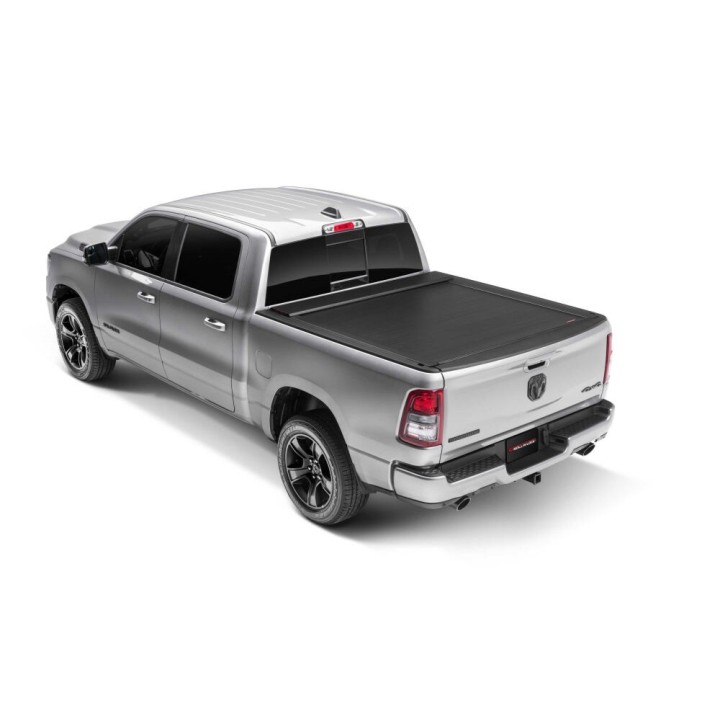 El diseño de perfil bajo de vinilo sobre aluminio mantiene una apariencia elegante de la caja del RAM 1500 con un sistema de enrollado de aluminio con una bisagra perfilada patentada para una rotación sin fricción y protección contra robos.