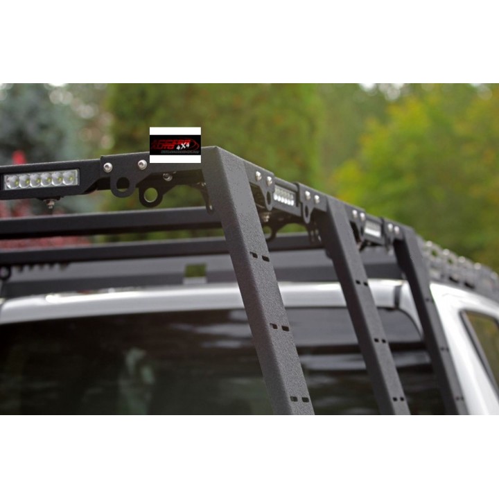 La versión alta de esta galería de caja permite montar una tienda de techo y hacer que pase por encima del techo del vehículo.