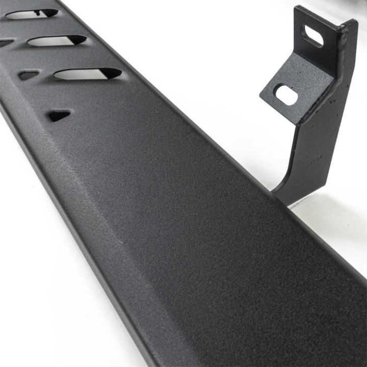 Los estribos laterales SHARK son una adición fiable a su vehículo, combinando durabilidad y funcionalidad. Fabricados en acero, estos estribos están listos para afrontar incluso los desafíos más difíciles. Cada estribo está estampado a partir de una sola hoja de metal, garantizando longevidad y fiabilidad. Además, los estribos cuentan con ranuras. Tres soportes a cada lado están fabricados en acero de 5 mm de espesor, lo que se traduce en una resistencia y estabilidad excepcionales. Los estribos tienen una longitud de 203 cm y una anchura de 16,5 cm, ofreciendo una experiencia cómoda. Además, la parte inferior de los estribos está reforzada, como muestran claramente las fotos. La capacidad máxima de peso por estribo es impresionante de 300 kg, lo que convierte a estos estribos laterales no solo en una adición estética a su vehículo, sino también en una solución práctica para cualquier conductor.