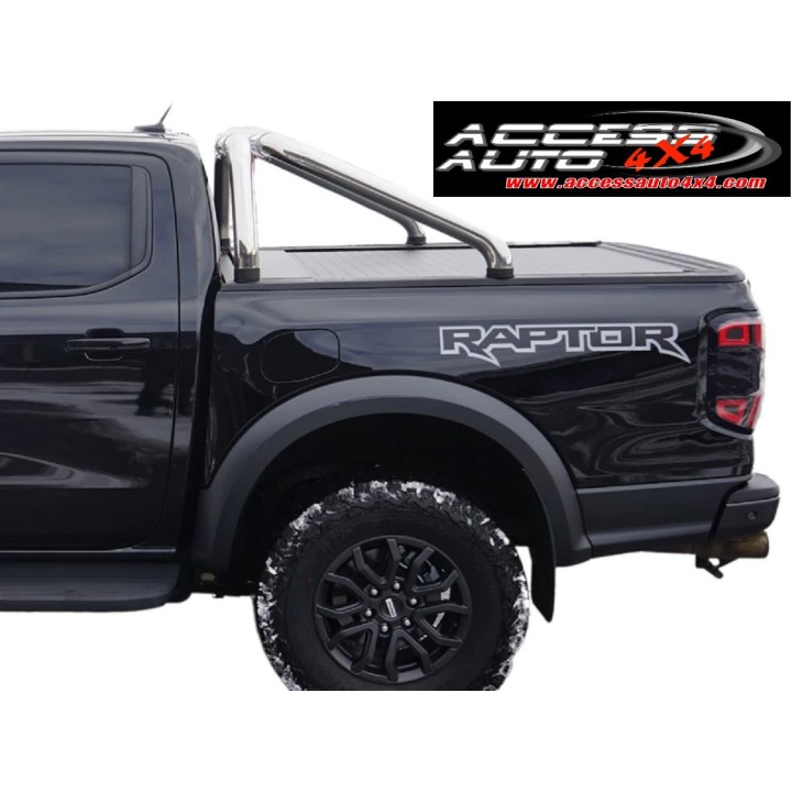 ROLL BAR FORD RANGER RAPTOR 2023 HASTA HOY DOBLE BARRA INOX 76mm CROMADO Diseño Deportivo cubierta de caja Mountain Top