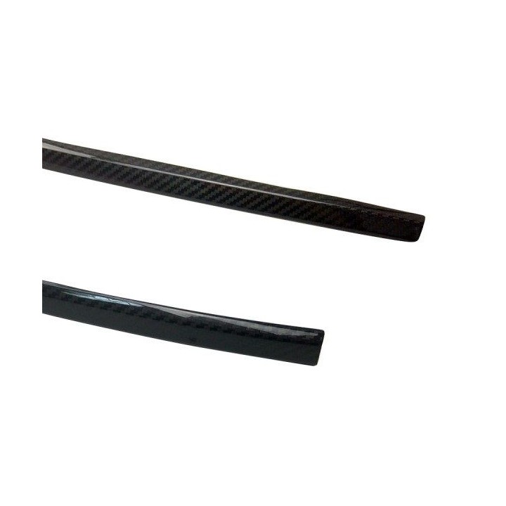 estas piezas de acero inoxidable cubren las aletas superiores de la calandra original para transformarlas en un acabado de CARBONO NEGRO sin desmontar la calandra: se fijan directamente en la parte inferior del portón trasero mediante un sistema autoadhesivo 3M situado en la parte posterior de la pieza.