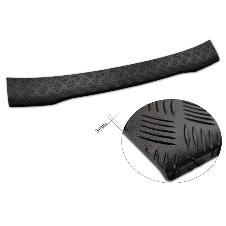 Esta protección de umbral de maletero con borde protege eficazmente contra abolladuras y arañazos durante la carga y descarga. Gracias a su forma, como el patrón acanalado en la parte superior, está hecha para adaptarse perfectamente al diseño del FORD COURIER. Y si algún día desea reemplazar el protector después de un uso intensivo, también es posible. Será mucho más barato que repintar su parachoques.