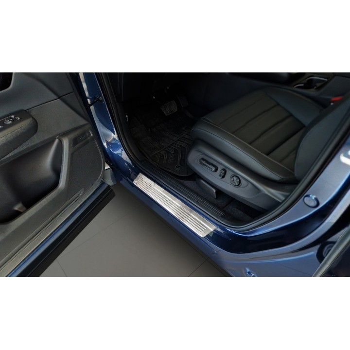 Los umbrales de puerta de ACERO INOXIDABLE protegen eficazmente los bordes de su HONDA CR-V contra abolladuras y arañazos que pueden ocurrir al entrar y salir. Además, le dan a su HONDA CR-V una apariencia de alta gama. Este accesorio de alta calidad está fabricado en Europa.