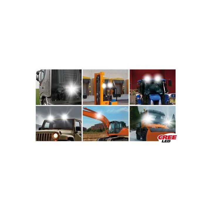 Carcasa de aluminio, lente de PMMA, IP 67 impermeable. Soporte de acero con tornillos de fijación. Haz de enfoque multitensión (luz de carretera), 18W (6 led x 3W), 6000 ° K - 1560 lúmenes.