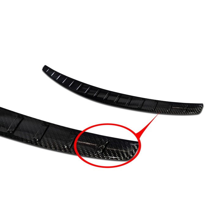 Este umbral de maletero está fabricado en CARBONO de alta calidad y se suministra con un kit de montaje completo e instrucciones de instalación claras. La instalación es muy fácil, ya que el producto está equipado con cinta adhesiva de doble cara.