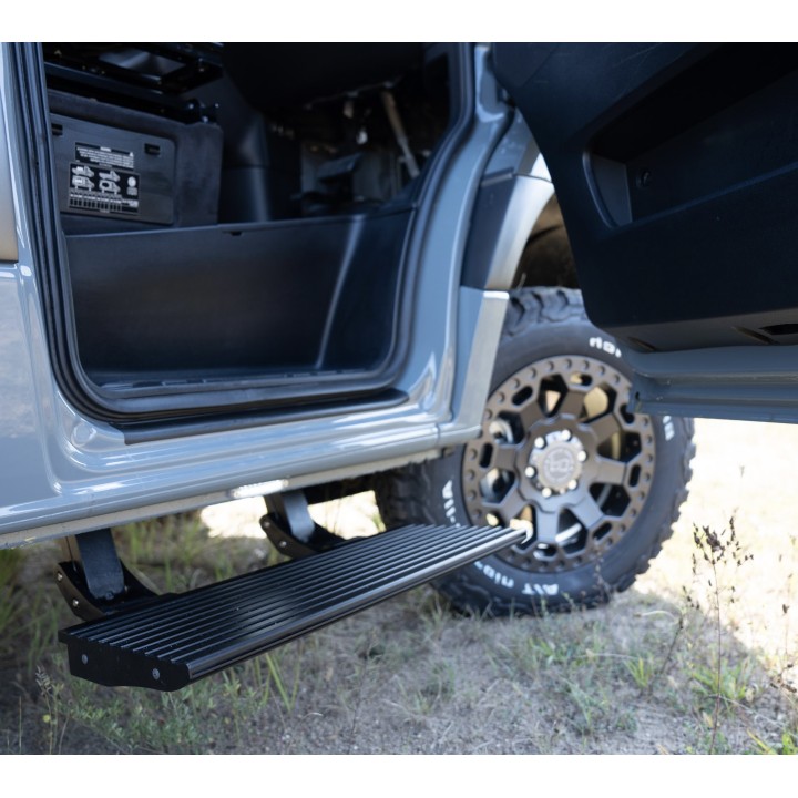 Este sistema de estribo eléctrico está diseñado para mejorar la accesibilidad de los pasajeros que entran y salen de la Mercedes Sprinter