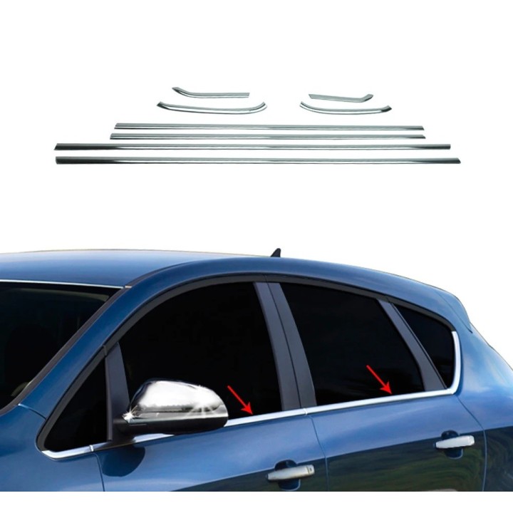 Moldura de ventana OPEL ASTRA 5 puertas 2010 2015 INOX CROMADO 8 PIEZAS