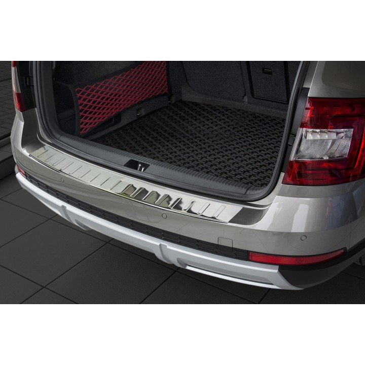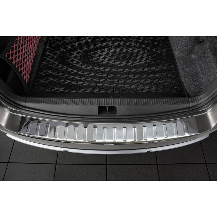Esta protección de umbral de maletero con bordes protege eficazmente contra abolladuras y arañazos durante la carga y descarga. Gracias a su forma, como el patrón acanalado en la parte superior, está hecha de tal manera que se adapta perfectamente al diseño del SKODA OCTAVIA SCOUT. Y si algún día desea reemplazar el protector después de un uso intensivo, también es posible. Será mucho más barato que volver a pintar su parachoques.