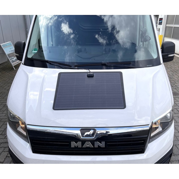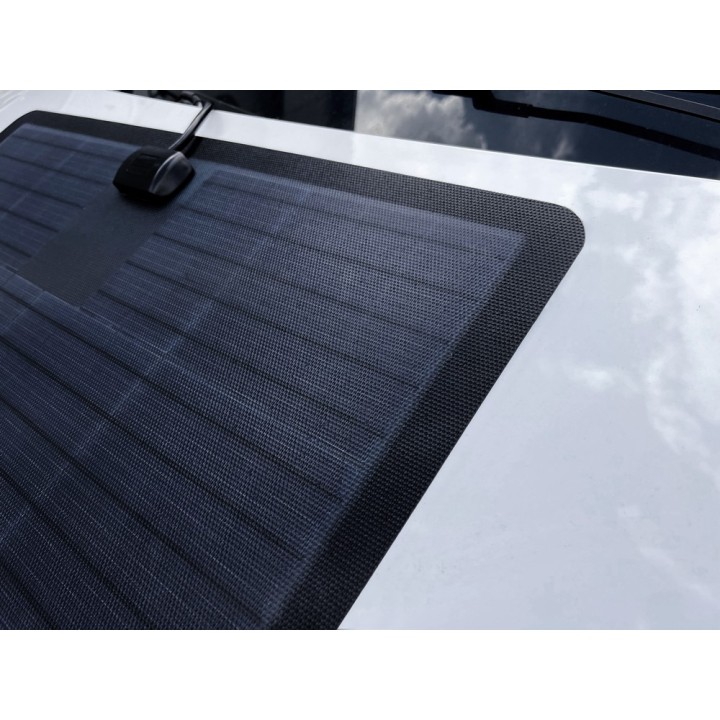Con un grosor de solo 3 mm, el módulo solar es potente, impermeable y ultraligero (60% menos que los módulos solares convencionales). Transporta 90 vatios de energía de módulos solares de solo 3 mm de grosor en el capó de su nuevo Land Rover Defender, lo que no afecta en absoluto la aerodinámica del vehículo y el peso del sistema solar también es insignificante. Nuestros paneles resisten condiciones ambientales severas como el sol, la lluvia, la nieve, el hielo, el barro, las astillas de piedra, las ramas, etc. sin ningún problema y, por lo tanto, son perfectamente adecuados para vehículos todoterreno.