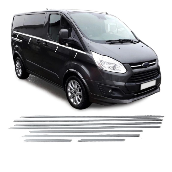 Moldura de ventana FORD TRANSIT CUSTOM CORTA 2012 2023 INOX CROMO 8 PIEZAS