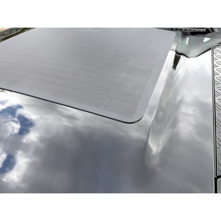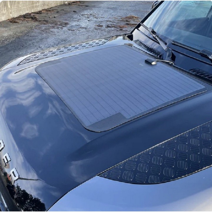 Con un grosor de solo 3 mm, el módulo solar es potente, impermeable y ultraligero (60% menos que los módulos solares convencionales). Transporta 90 vatios de energía de módulos solares de solo 3 mm de grosor en el capó de su nuevo Land Rover Defender, lo que no afecta en absoluto la aerodinámica del vehículo y el peso del sistema solar también es insignificante. Nuestros paneles resisten condiciones ambientales severas como el sol, la lluvia, la nieve, el hielo, el barro, las virutas de piedra, las ramas, etc. sin ningún problema y, por lo tanto, son perfectamente adecuados para vehículos todoterreno.