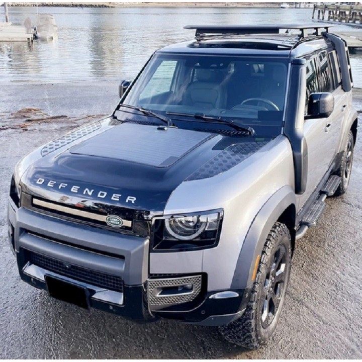 El módulo flexible se monta simplemente en el capó de su nuevo Land Rover Defender y - sin tener que arrancar el motor - ofrece energía ecológica para cargar dispositivos de 12V como refrigeradores, ordenadores portátiles, teléfonos móviles, cámaras, radios, luces, etc. porque este panel solar personalizado se monta directamente en su capó, no se requiere ninguna rejilla de techo adicional o similar para la instalación.
