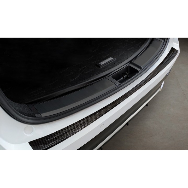 esta protección de umbral de maletero con bordes protege eficazmente contra abolladuras y arañazos durante la carga y descarga. Gracias a su forma, como el patrón acanalado en la parte superior, está hecha de tal manera que se adapta perfectamente al diseño del LEXUS NX. Y si algún día desea reemplazar el protector después de un uso intensivo, también es posible. Será mucho más barato que volver a pintar su parachoques.