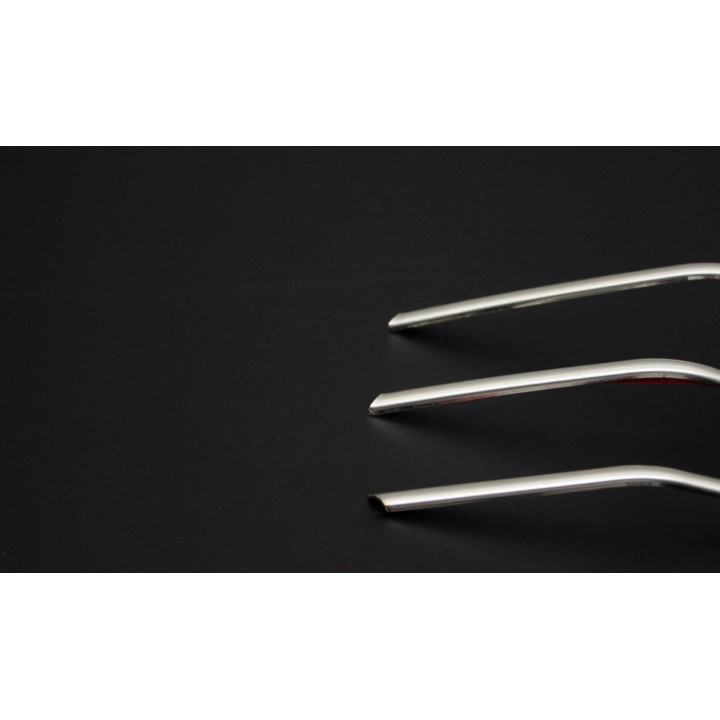 estas piezas de acero inoxidable cubren las aletas de la parrilla original para transformarlas en un acabado CROMADO sin desmontar la parrilla: se fijan directamente en la parte inferior del portón trasero mediante un sistema autoadhesivo 3M situado en la parte posterior de la pieza.