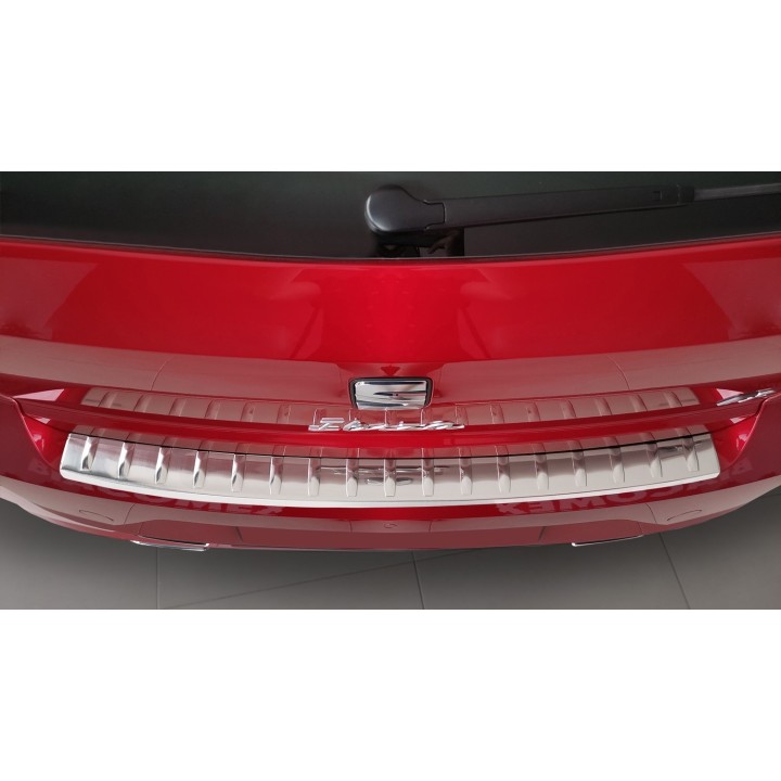 Esta protección de umbral de maletero con bordes protege eficazmente contra abolladuras y arañazos durante la carga y descarga. Gracias a su forma, como el patrón acanalado en la parte superior, está hecha para adaptarse perfectamente al diseño del SEAT IBIZA. Y si algún día desea reemplazar el protector después de un uso intensivo, también es posible. Será mucho más barato que repintar su parachoques.