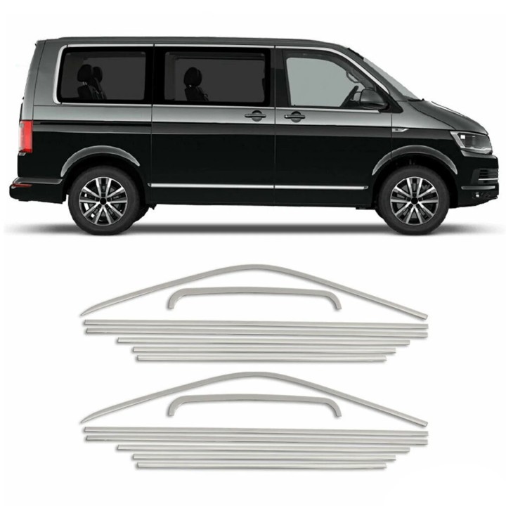 Moldura de Ventana VOLKSWAGEN T6.1 CORTO 2019 HOY INOX CROMO 14 PIEZAS 1 puerta corredera