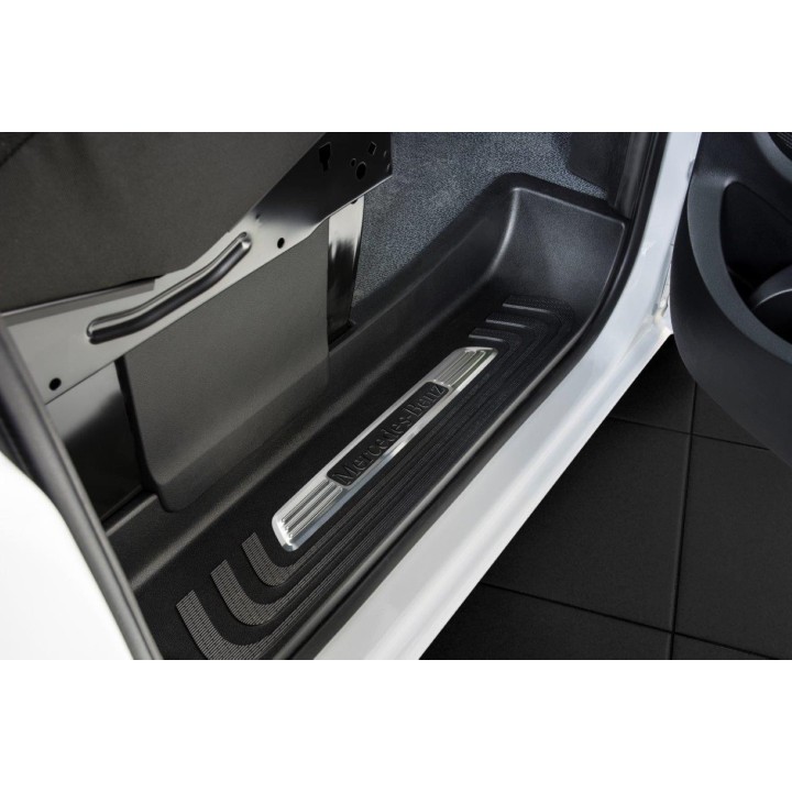 Los umbrales de puerta INOX protegen eficazmente los bordes de su MERCEDES VITO contra abolladuras y arañazos que pueden ocurrir al entrar y salir. Además, le dan a su MERCEDES VITO una apariencia de alta gama. Este accesorio de alta calidad está fabricado en Europa.