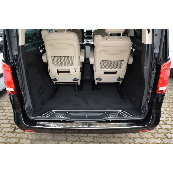 Esta protección de umbral de maletero con borde protege eficazmente contra abolladuras y arañazos durante la carga y descarga. Gracias a su forma, como el patrón acanalado en la parte superior, está hecha para adaptarse perfectamente al diseño del MERCEDES VITO CLASE V. Y si algún día desea reemplazar el protector después de un uso intensivo, también es posible. Será mucho más barato que volver a pintar su parachoques.